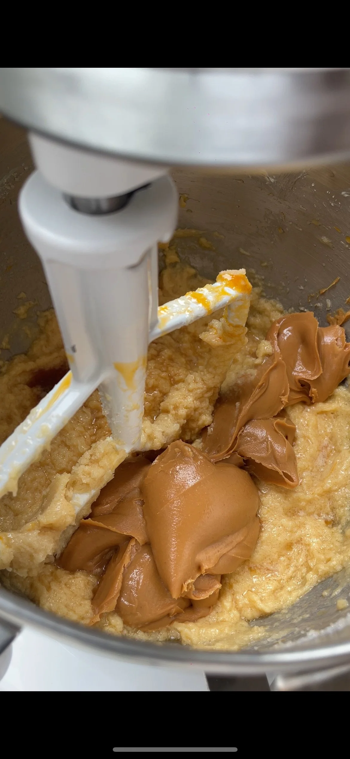 Beat in vanilla extract and peanut butter